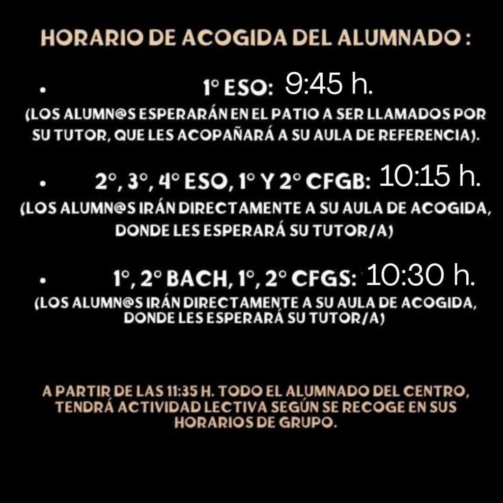 Calendario inicio de curso