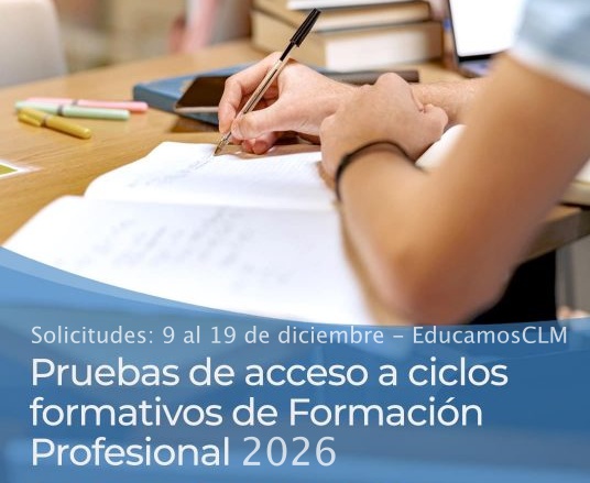 Ha salido publicada en el DOCM la convocatoria para solicitar la participación en las pruebas de acceso a Ciclos Formativos de Formación Profesional en el año 2026.